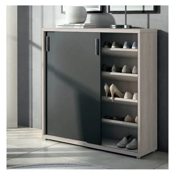 خزانة أحذية KNG11 بتصميم عصري يجمع بين اللونين الأسود والبيج.