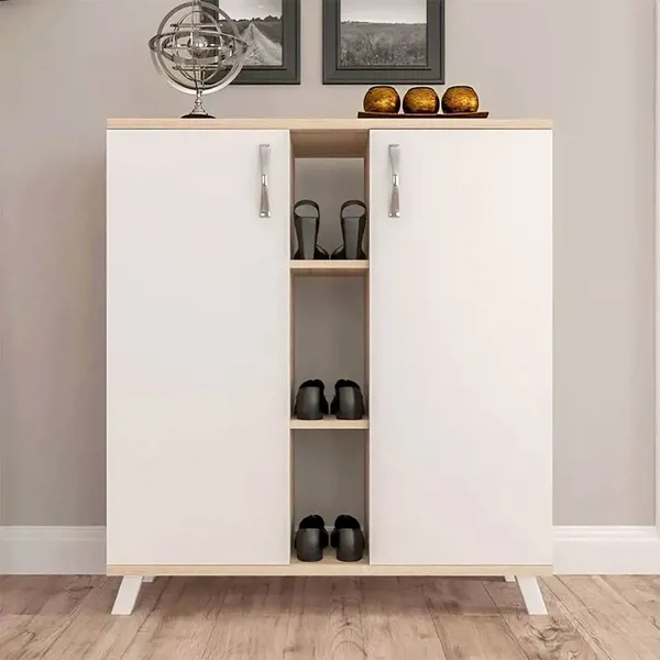 بالإضافة إلى ذلك، فإنها توفر مساحة تخزين إضافية بفضل ضلفتيها، مما يسهل تنظيم الأحذية بشكل مرتب ومنظم.