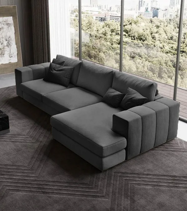 يُظهر التصميم الزاوي مرونة في ترتيب الأثاث، مما يسهل دمجها مع أنماط ديكور متعددة.