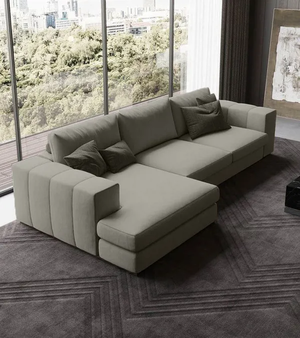 تصميمها بشكل حرف L يجعلها متعددة الاستخدامات لتلائم تنسيقات الغرف الحديثة، وتعزز حضورها الفاخر بخامات مختارة بعناية وجودة تصنيع مرتفعة.