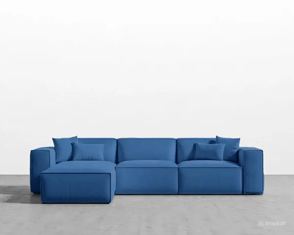ركنة حرف L فاخرة بتصميم عصري مريح، تجمع بين أناقة القطيفة وجمال خشب الزان الأحمر وراحة الإسفنج السوفت عالي الكثافة.