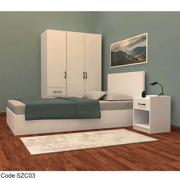 العدد: 3 قطع (سرير، دولاب، كومود).