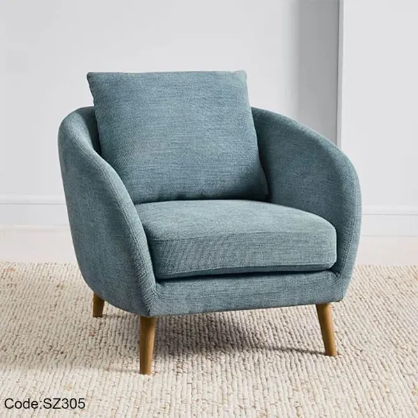 كرسي KN305 - تحفة تصميم تجمع بين أناقة الخشب الطبيعي وراحة القماش الفاخر.