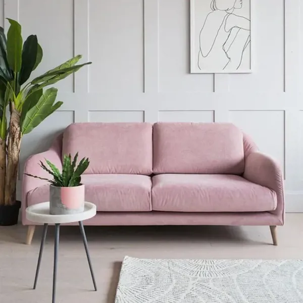 الكنبة الثنائية بلون الكاشمير تجمع بين راحة الجلوس المتوازنة والتصميم العملي الذي يناسب غرف المعيشة العصرية.