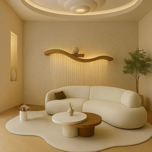 التصميم الكيرفي (المقوس) العصري يمنح الغرفة أجواء فنية راقية ويكسر رتابة الأشكال التقليدية،