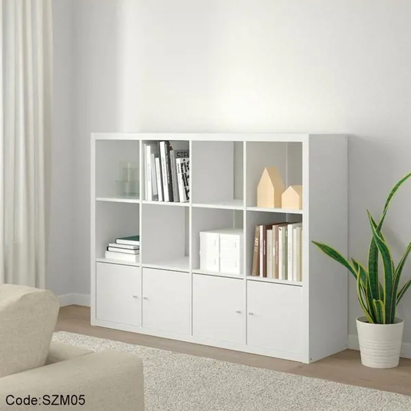 وتتميز هذه المكتبة بأنها مصنوعة من الخشب عالي الجودة وتحتوي على 4 ضلف واسعة توفر مساحة كبيرة لتنظيم وعرض الكتب والديكورات.